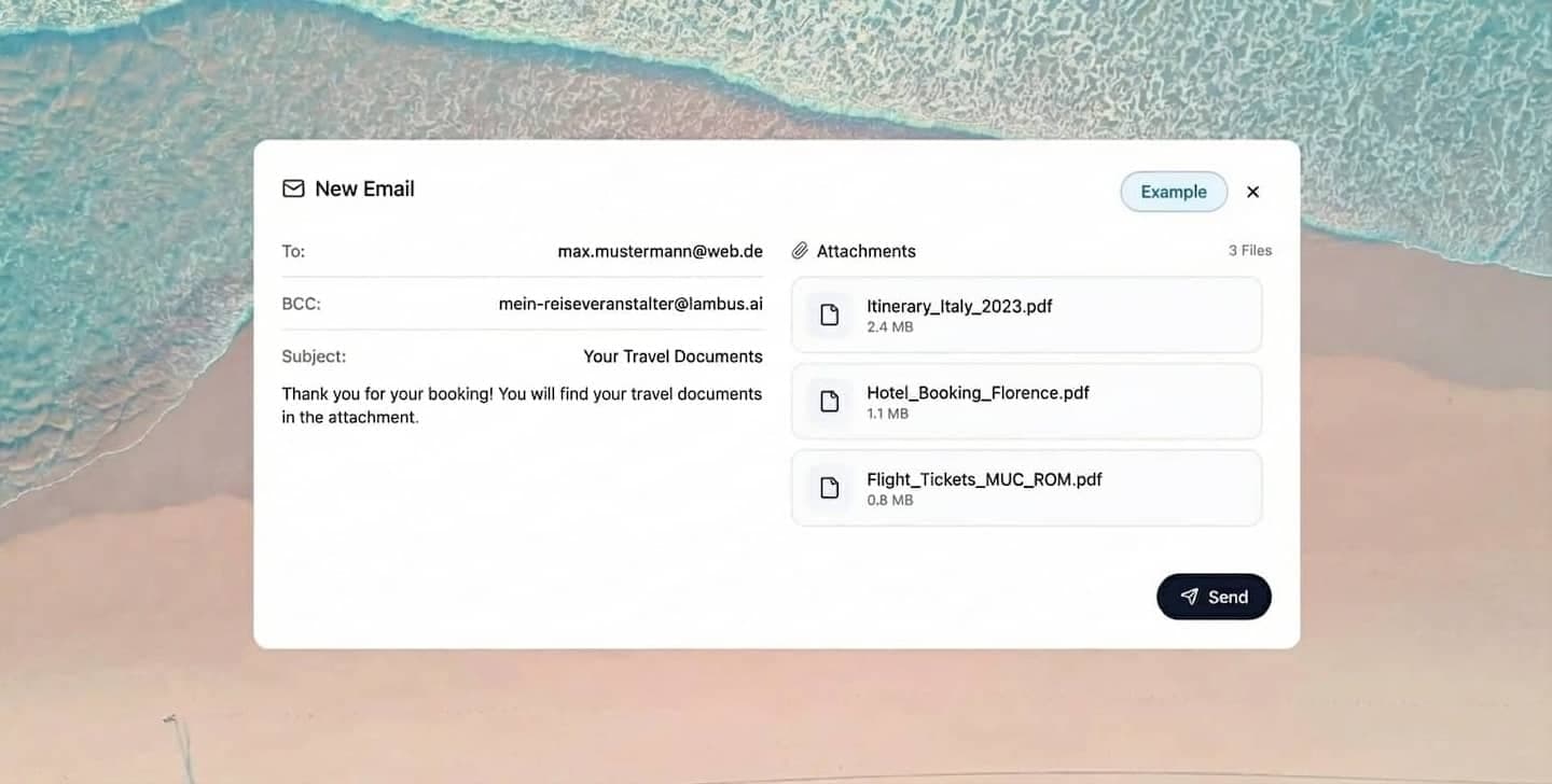 That way we receive the email with the booking documents at the same time as your customer, and our AI gets to work.