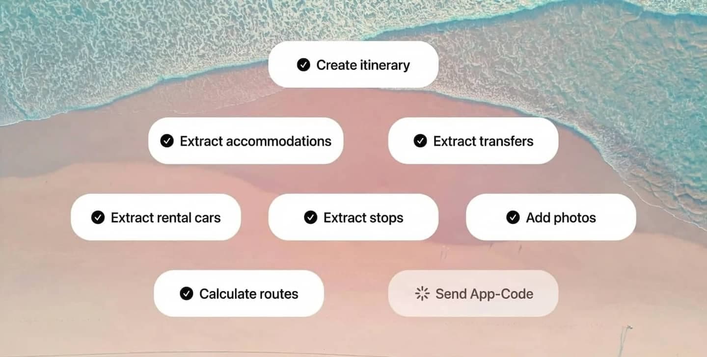 Once the trip is created, your customer automatically receives an email with the app code for the trip. It can also be shared with fellow travelers.